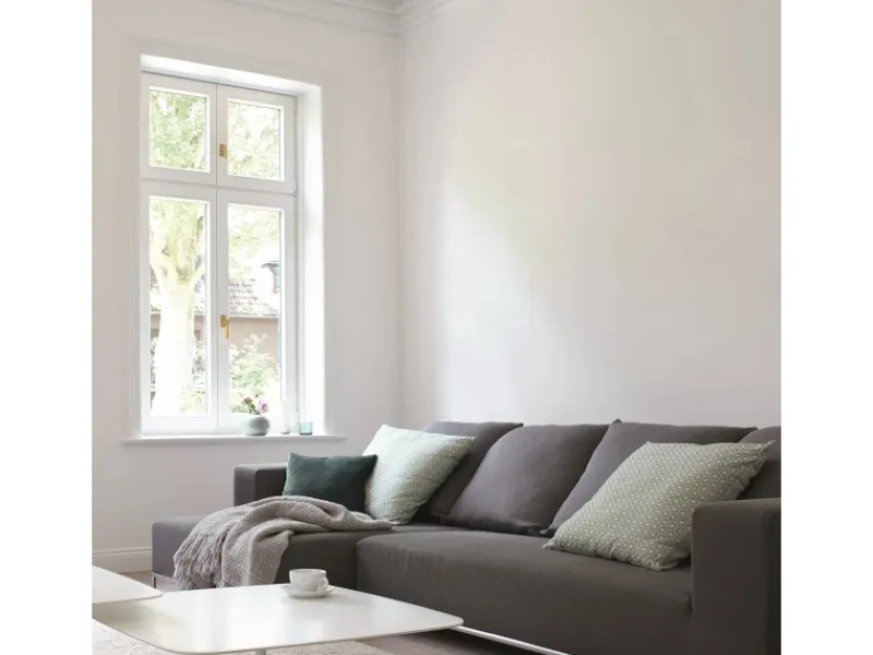 Durch den hohe Weißgrad und die starke Deckkraft deckt die Innenfarbe beim ersten Anstrich. Zudem ist sie scheuerbeständig. Auf diese Weise eignet sich die Wandfarbe auch für relativ stark beanspruchte Räume wie Kinderzimmer, Flur und Küche.