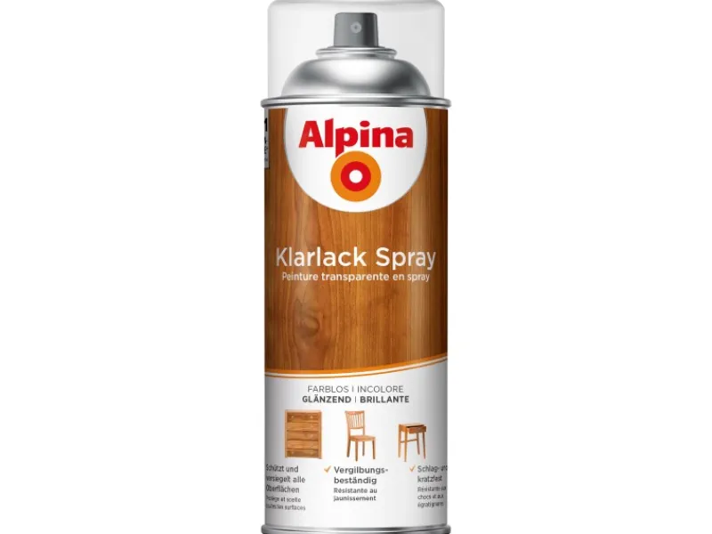 Das Alpina Klarlack Spray schützt Oberflächen vor Kratzern und ist damit der ideale Lack für beanspruchte Möbeloberflächen.