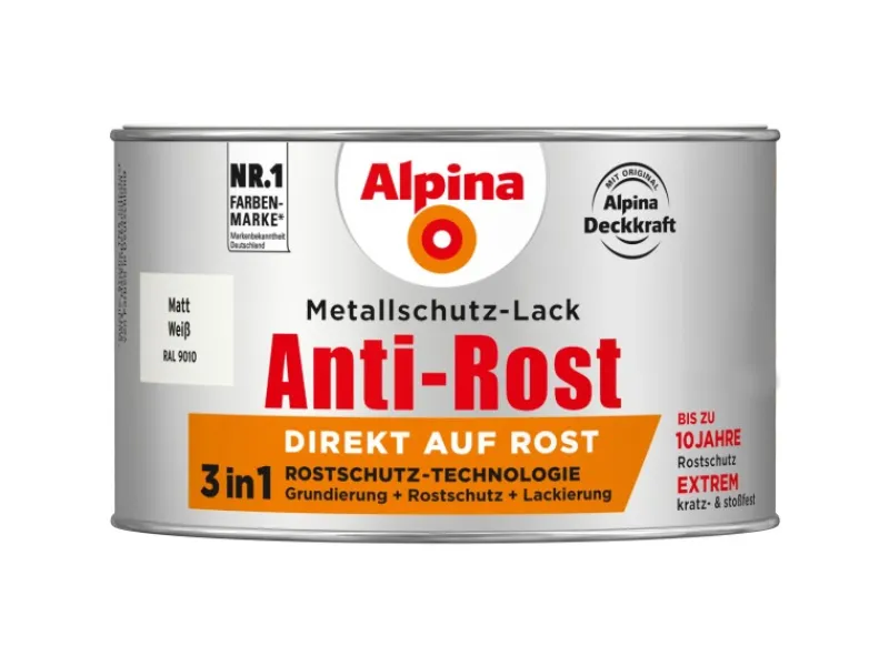 Alpina Metallschutz-Lack – Grundierung, Rostschutz und Lackierung in Einem