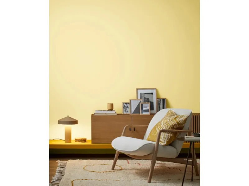 Vanillegelb ist extrem vielseitig. Immer hell und einladend, bringt die Farbe Ruhe und Leichtigkeit in jeden Raum, kann aber auch Hintergrund für kräftigere Töne wie Dunkelblau oder Erdtöne sein.