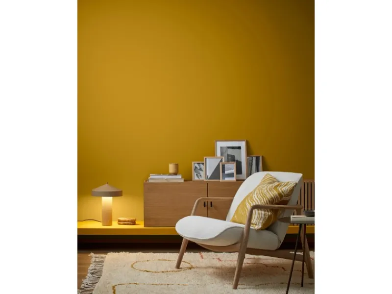 Ockergelb wirkt so beruhigend und ausgleichend, wie du das von einem warmen Erdton erwartest. Besonders elegant in Kombination mit verwandten, zurückhaltenderen Farbtönen wie zum Beispiel Cremebeige.
