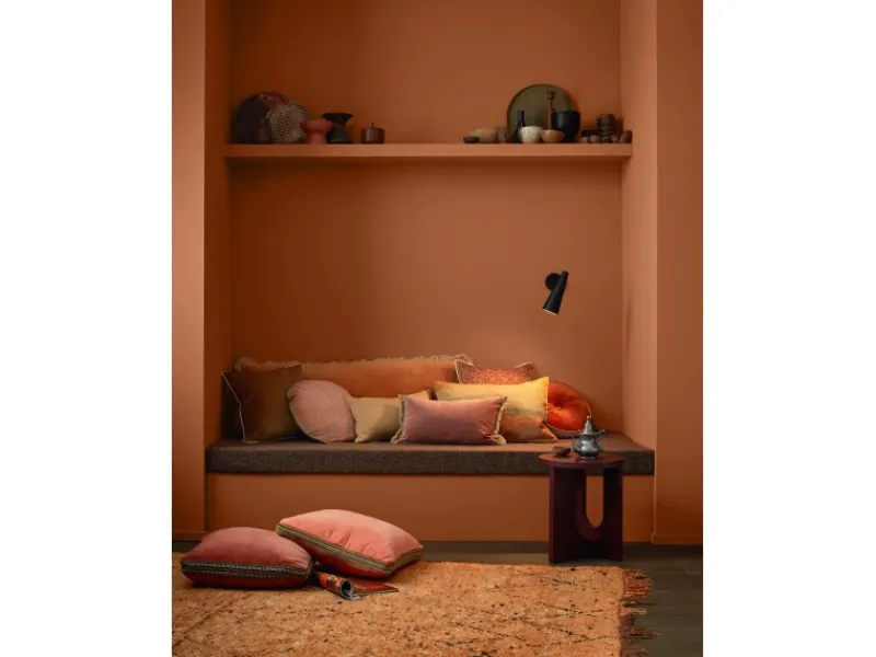Kupferorange ist erstaunlich wandelbar. Die Farbe kann mal romantisch, mal retro, aber immer gemütlich wirken. Als Akzent auf kleinem Raum oder, wenn du mutiger bist, auch großzügiger eingesetzt.