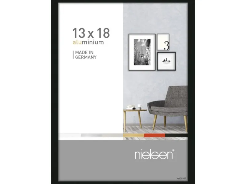 Formate bis 18 x 24 cm haben einen Aufsteller auf der schwarzen MDF-Rückwand