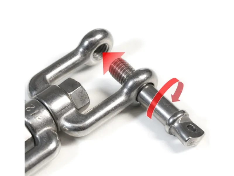 Wirbel-Schäkel aus rostfreiem Edelstahl, flexibel mit Schraub-Verschluss.