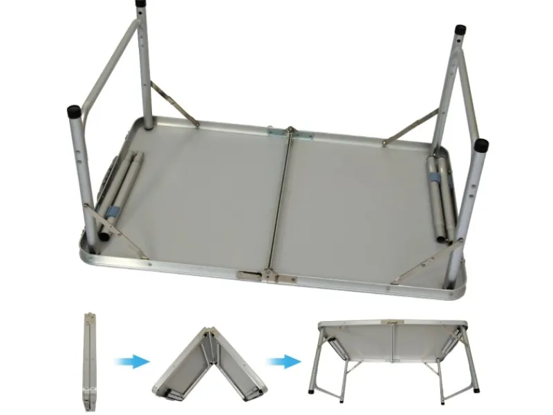 Das komplette Tischset aus Aluminium wiegt nur ca. 4 kg.