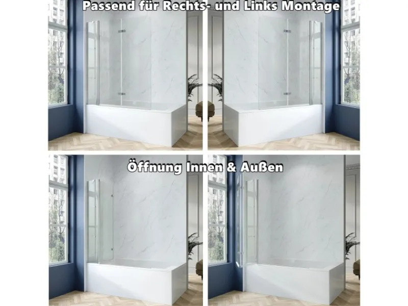 Die Badewannenfaltwand kann nach innen und außen gedreht werden und spart Platz