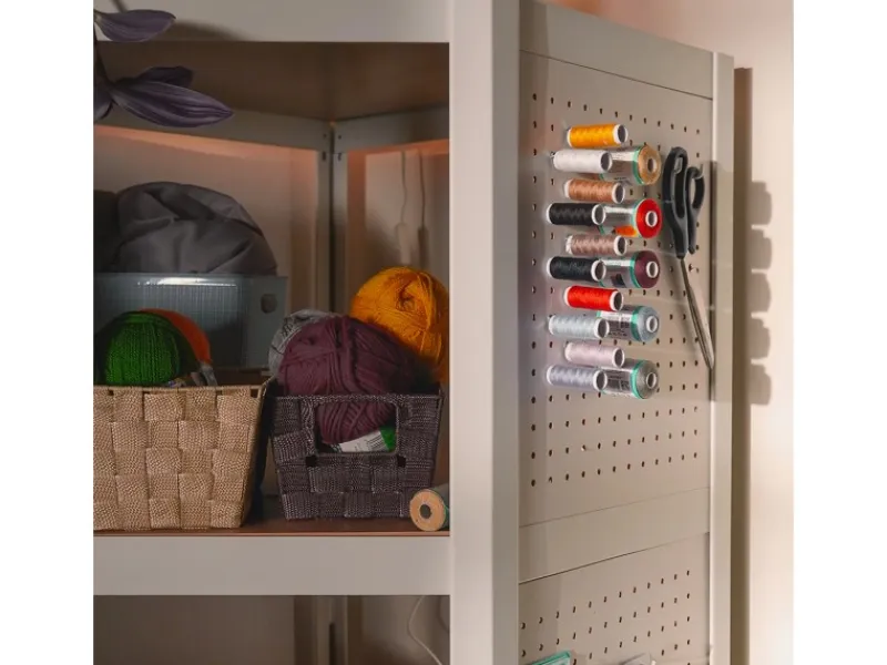 Darüber hinaus lässt sich das Regalsystem mit passenden Seiten- und Rückwänden, Lochwänden oder Türen flexibel erweitern und vervollständigen.