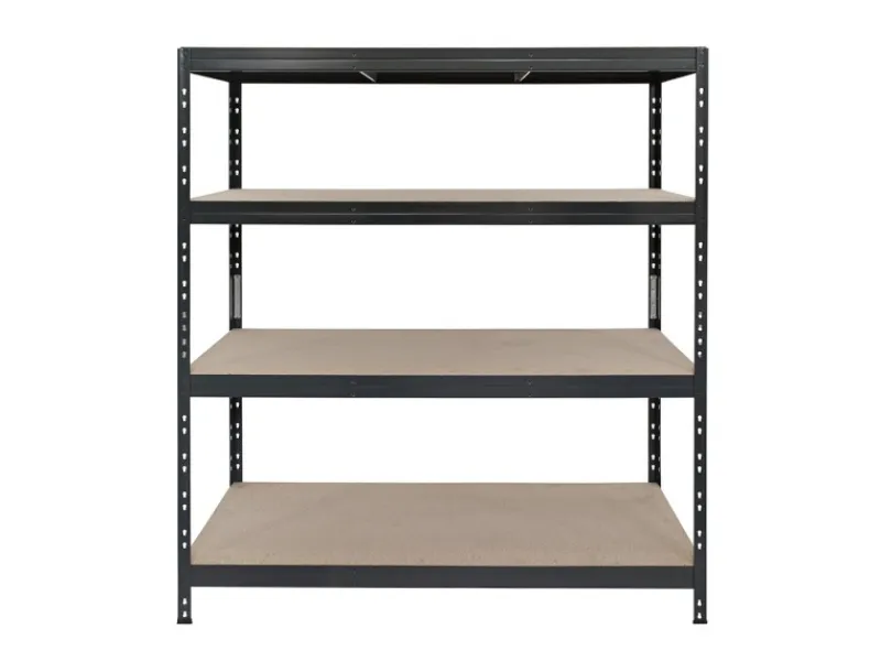 Das Ar Shelving Rivet L Schwerlast-Steckregal mit HDF-Böden hat eine hohe Tragkraft von pro Boden bei gleichmäßiger verteilter Last. Das Regal ist in Anthrazitgrau pulverbeschichtet und ist widerstandsfähig gegen Korrosion und mechanische Beschädigungen. Darüber hinaus zeichnet es sich mit einem schönen Design und einer einfachen Wartung aus. Regal kann auch in zwei gleich große Arbeitstische geteilt werden, wobei ihre Tragkraft pro Boden gleich bleibt.