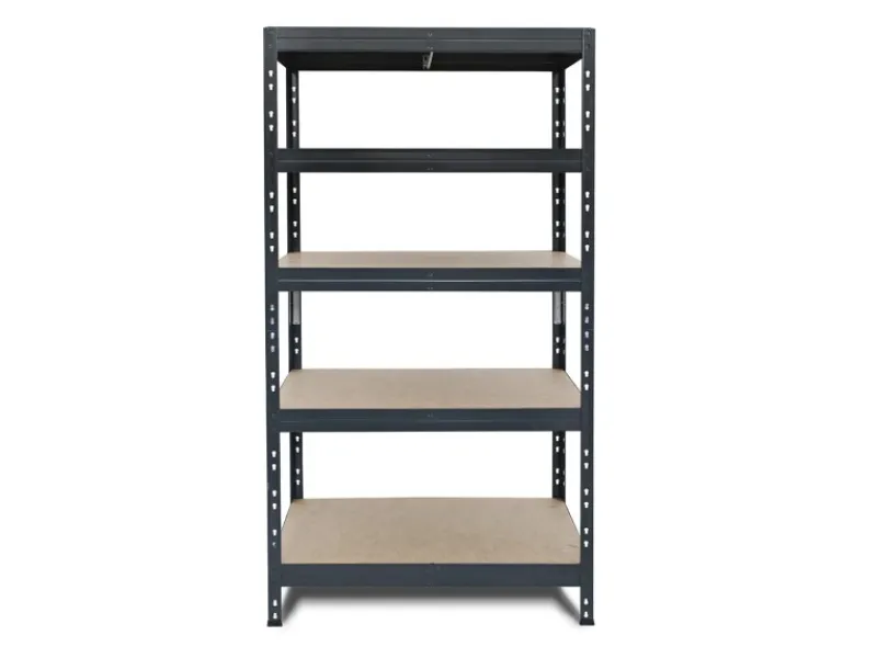 Das Ar Shelving Rivet L Schwerlast-Steckregal mit HDF-Böden hat eine hohe Tragkraft von pro Boden bei gleichmäßiger verteilter Last. Das Regal ist in Anthrazitgrau pulverbeschichtet und ist widerstandsfähig gegen Korrosion und mechanische Beschädigungen. Darüber hinaus zeichnet es sich mit einem schönen Design und einer einfachen Wartung aus. Regal kann auch in zwei gleich große Arbeitstische geteilt werden, wobei ihre Tragkraft pro Boden gleich bleibt.