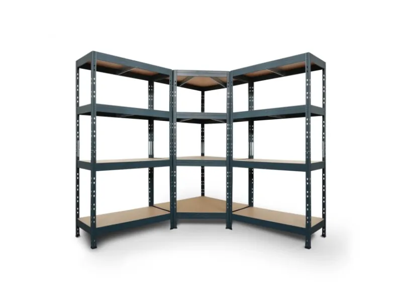 2 x Ar Shelving Rivet Scherlastregal 180 x 90 x 45 mit 4 HDF Böden und 250 Kg Traglast pro Boden, 1 x Ar Shelving Rivet Eck Scherlastregal 180 x 90 x 90 x 45 mit 4 Böden und 250 kg Traglast pro Boden.