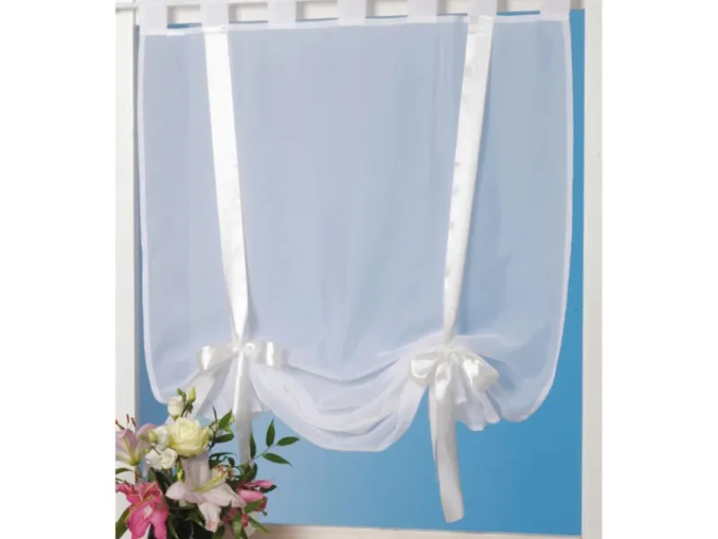 Sie lässt sich mit den fertigen Schlaufen an jeder handelsüblichen Gardinenstange befestigen und ist somit leicht zu arrangieren. Dank zweier glänzender Satinbänder, die sich jeweils zu einer Schleife binden lassen, ist die Höhe bis zu einem gewissen Grad flexibel. Somit passen Sie den Sichtschutz Ihren persönlichen Bedürfnissen individuell an. Ein gesäumter Rand verleiht dem Modell zudem einen stilgerechten Abschluss.