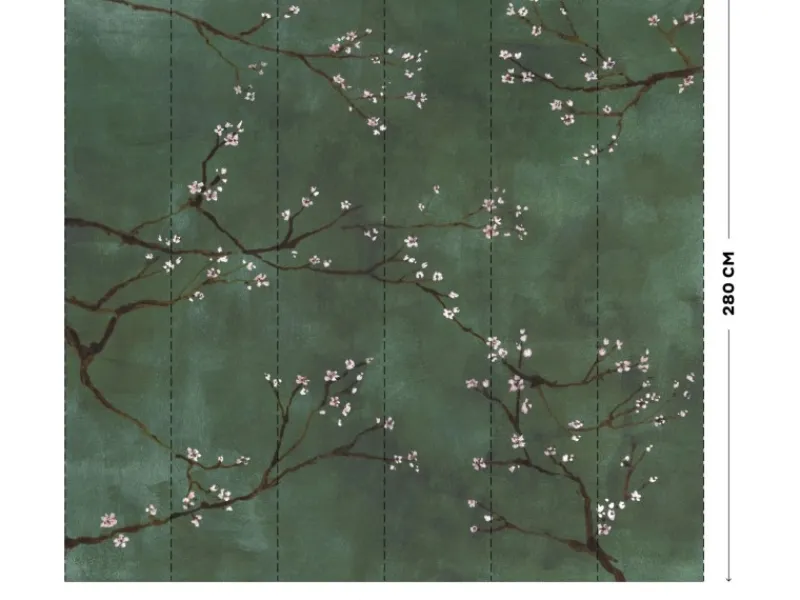 Weiße Kirschblüten auf einem tiefgrünen, leuchtenden Hintergrund verleihen dieser Fototapete ein einzigartiges Design, das sowohl strahlend als auch beruhigend wirkt. Mit Vliestapeten wird das Tapezieren zum Kinderspiel. Sie bestreichen die Wand mit Kleister und bringen die Tapete direkt und präzise auf die Wand auf. Ein Tapeziertisch ist also überflüssig! Achten Sie darauf, dass Sie mit einer trockenen und ebenen Wand arbeiten, um das beste Ergebnis zu erzielen. Anleitung und Details auf der Rückseite des Etiketts der Rolle