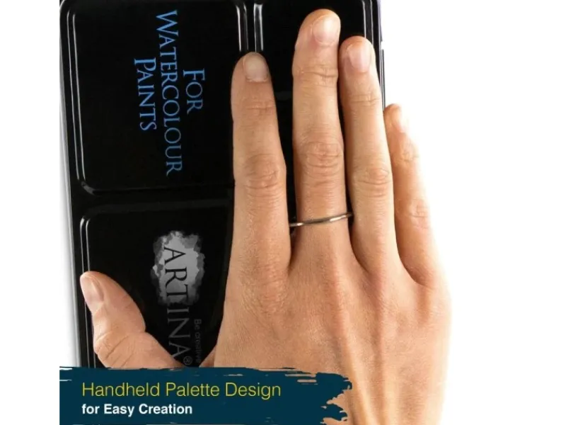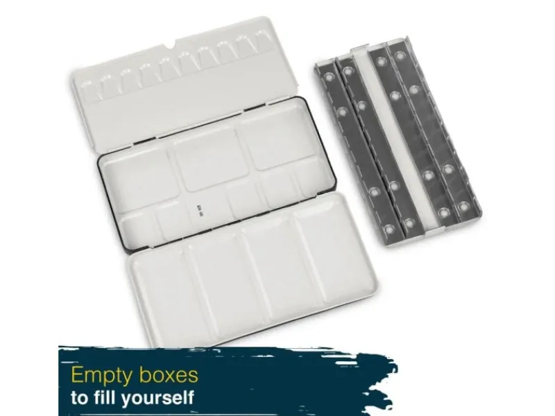 Der leere Aquarell Malkasten von Artina besteht aus einem Farbkasten mit vielen Fächern, so können Sie Ihren eigenen Aquarellfarbkasten gestalten.Zwei aufklappbare Flächen, mit Einkerbungen, bieten die Möglichkeit zum Mischen von Malfarben sowie zum Hinzufügen von Wasser.Gestalten Sie ihren eignen Aquarellfarbkasten und befüllen Sie ihn mit den Farben die sie benötigen.Der Aquarellkasten ist für jeden geeignet. Er eignet sich sowohl für Kinder als auch für Profis. Aquarell Wasserfarben sind direkt bereit zum Malen, durch die einfache Benutzung des Aquarellpinsel werden bereits Farbe und Wasser vermischt.