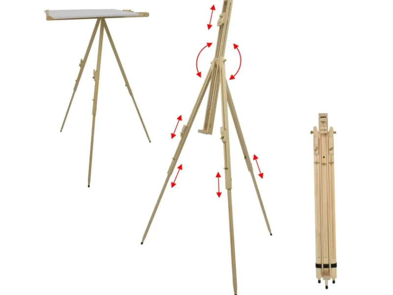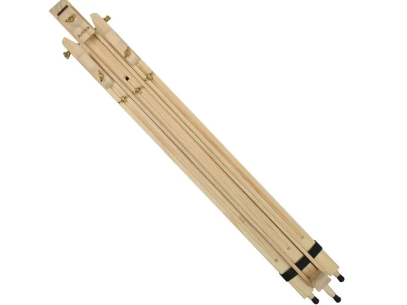 Artina Tragbare Feldstaffelei Malaga aus KiefernholzLassen Sie Ihrer Kreativität als Künstler freien Lauf und stellen Sie einen Keilrahmen auf diese oder verwenden Sie die Staffelei für Kinder. Aber auch als Aufsteller für Bilder, leichte Tafeln oder gar einen Menü- oder Sitzplan eignet sich die tragbare Staffelei Malaga von Artina. Das besonders Praktische an dieser Feldstaffelei aus Holz ist, dass sie sich mit sehr einfachen Handgriffen platzsparend zusammenklappen lässt und nur 1,6 kg wiegt. Somit ist die Staffelei bestens für den mobilen Einsatz geeignet.Leinwände bis 110 cm