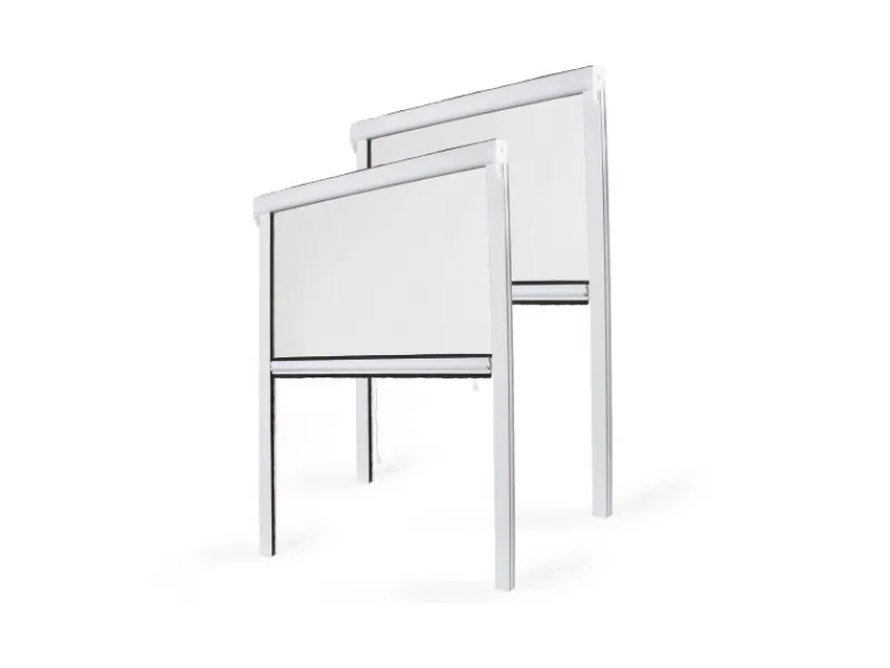 Der Netzstoff dieses Insektenschutzrollos kann entweder vollständig ausgefahren werden, um einen optimalen Insektenschutz zu gewährleisten oder vollständig in seinem Schutzkasten eingerollt werden. Das Insektenschutzrollo wird an der Außenseite des Fensters angebracht. Das Fliegengitter wird von innen mit Griffen geöffnet oder geschlossen. Dank des Schutzkastens wird der Netzstoff geschützt, wenn dieser nicht gebraucht wird.