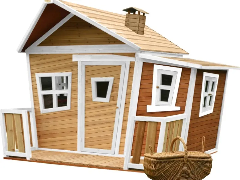 Das Lisa Spielhaus besteht aus FSC 100% Hemlockholz und hat ein Dach aus FSC 100% Zypressenholz, die beide aus bewirtschafteten Wäldern stammen. Hemlock und Zypresse splittern nicht und sind von Natur aus resistent gegen Witterungseinflüsse wie Regen und damit resistent gegen Verrottung. Das Holz wird mit einer speziellen Beize behandelt und ist daher nahezu wartungsfrei.
