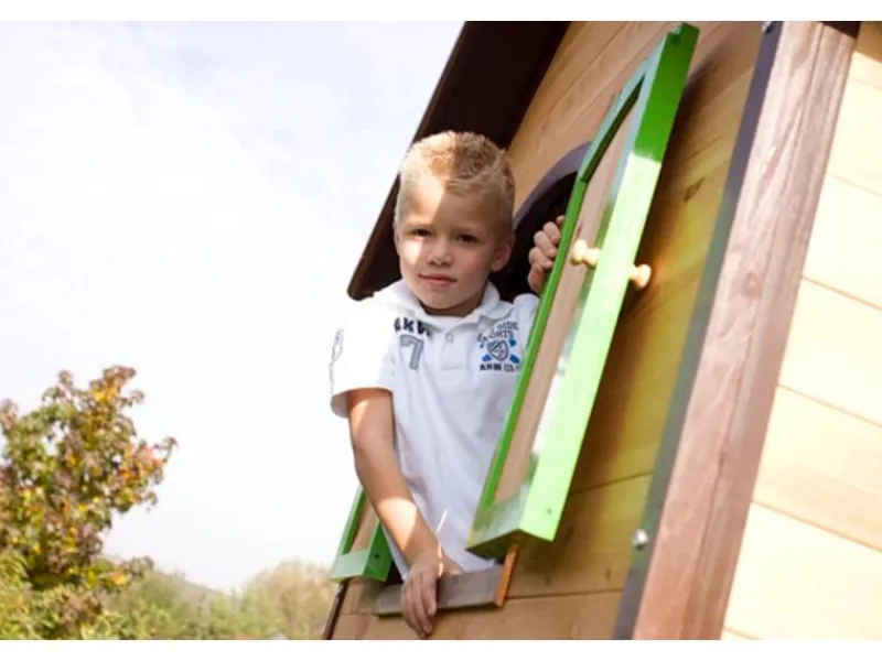 Das Kinderhaus hat insgesamt 4 Fenster und ein Bullauge, wodurch ausreichend Licht in das Haus gelangt. Die Fenster lassen sich komplett öffnen, dadurch können Ihre Kleinen von überall hinaus schauen. Die große Eingangstür ermöglicht einen einfachen Zugang in das Haus. Auch ein Fußboden ist im Lieferumfang enthalten.