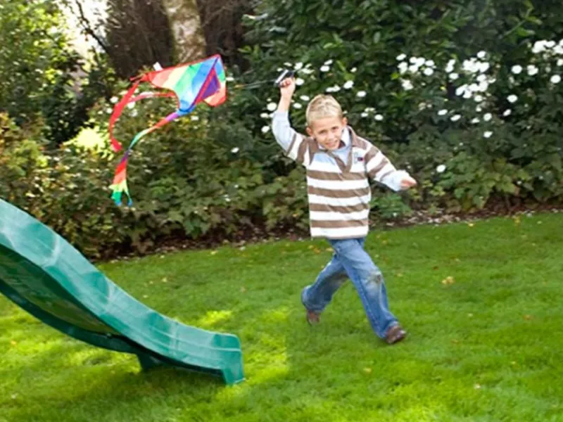 Die Podesthöhe beträgt 120 cm. Für Erwachsene ist dies keine bemerkenswerte Höhe, aber für Kinder wirkt der Podest riesig! Von dort aus können Sie den ganzen Garten überblicken und fühlen sich wie kleine Entdecker. Außerdem können Ihre Kinder vom Podest aus die 220 cm lange Rutsche runter rutschen.