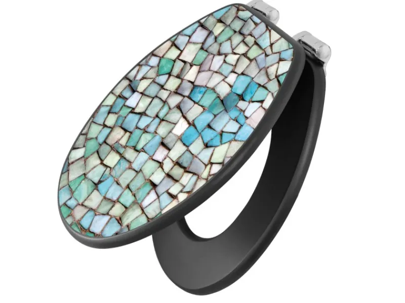 Banjado Anthrazit Toilettendeckel Mit Absenkautomatik WC-Sitz Soft Close Hygienischer Klodeckel MDF Mit Motiv Mosaik Blau