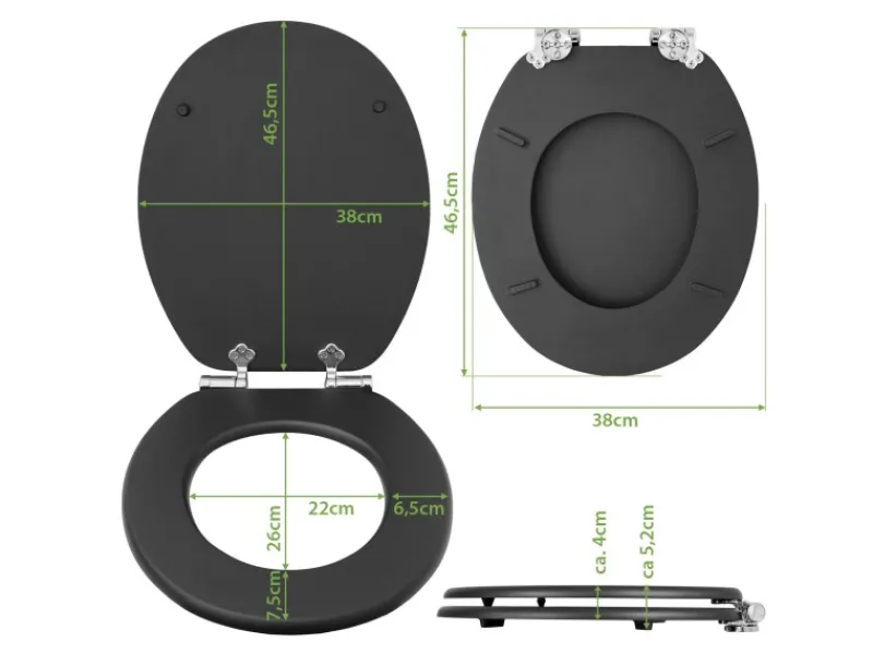 ELEGANTES DESIGN – Verleihen Sie Ihrem Badezimmer mit diesem stilvollen WC-Sitz in edlem Anthrazit und mit Motiv eine moderne Atmosphäre. Robust, pflegeleicht & komfortabel – für ein rundum stimmiges Badambiente!ABSENKAUTOMATIK – Die doppelte Absenkautomatik schließt den Klositz langsam & geräuschlos. Das schont die Oberfläche des Toilettensitzes und macht ihn langlebig. Dank universellem Standardmaß und O-Form passt der WC-Sitz auf handelsübliche WC-Becken.LANGLEBIG – Der Toilettendeckel aus stabilem MDF Holz ist besonders langlebig und garantiert durch seine hochwertige Oberfläche einen bequemen Sitzkomfort. Die porenglatte Oberfläche der WC Brille ist besonders pflegeleicht.EINFACHE MONTAGE – Vollständiges Befestigungsmaterial und eine mehrsprachige Anleitung ist im Lieferumfang enthalten. Damit ist eine schnelle und einfache Montage der Klobrille garantiert.BANJADO – Ob im klassischen Design oder mit hochwertiger Motivfolie veredelt – unser Familienunternehmen aus Sachsen bringt Stil in ihr Badezimmer.
