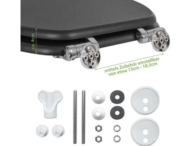 Der Toilettensitz mit Absenkautomatik besteht aus hochwertigem MDF