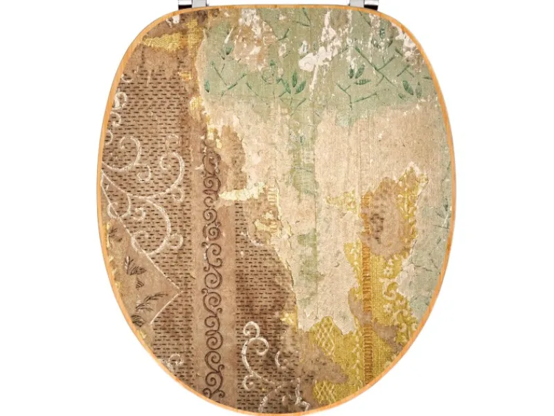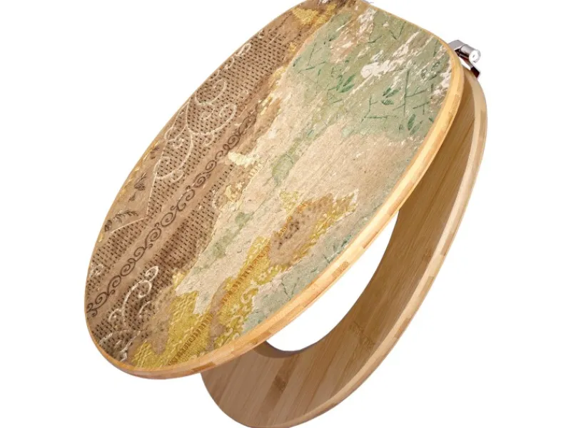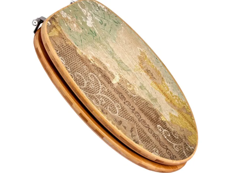 Der Klodeckel Bambus mit dem Motiv Alte Tapeten hat eine ansprechende Optik, ist stabil und massiv. Das Motiv besteht aus einer schutzlaminierten Motivfolie, die durch das Schutzlaminat zusätzlich vor Kratzern schützt.