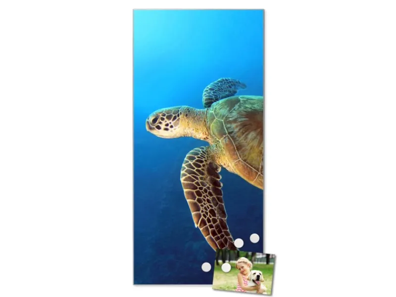 Die Magnet Pinnwand besteht aus silber lackiertem Stahl in der Größe 37 x 78cm. Die aufgebrachte Motivfolie ist mit einem Schutzlaminat überzogen, wodurch sie UV-Resistent und stoßfest ist.