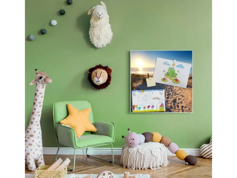 Sie können die Magnet Tafel auch dekorativ als Wandbild nutzen, es halten alle handelsüblichen Magnete daran. Das Komplettpaket aus magnetischer Notiztafel, Montageset & 4 Magneten ermöglicht einen sofortigen Einsatz.