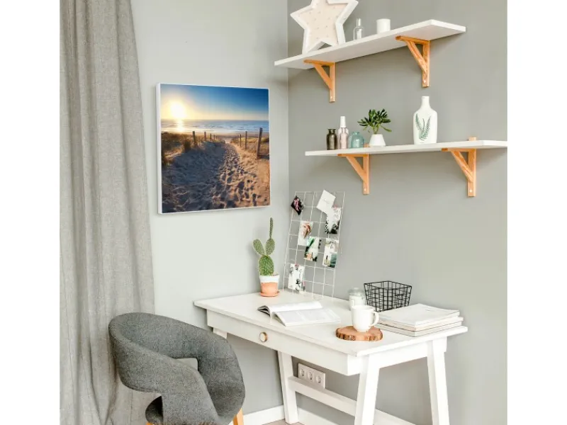 Das Motiv Nordseestrand wird mit einem Schutzlaminat überzogen und ist lösungsmittelfrei.