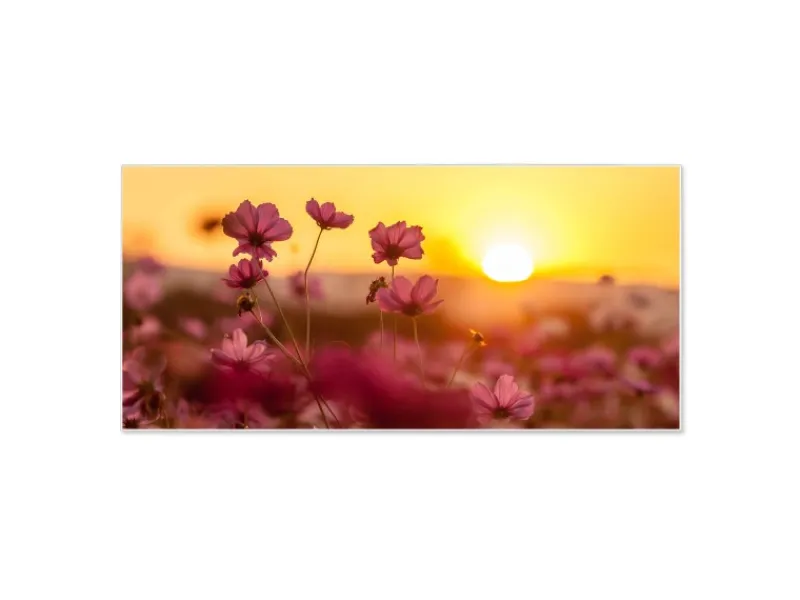 Das Motiv Cosmea Feld wird mit einem Schutzlaminat überzogen und ist lösungsmittelfrei.
