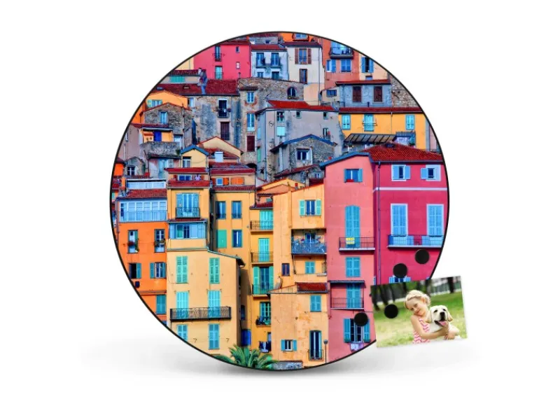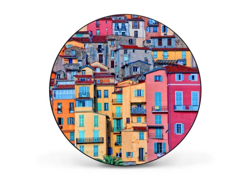 Das Motiv Häuserberg wird mit einem Schutzlaminat überzogen und ist lösungsmittelfrei.