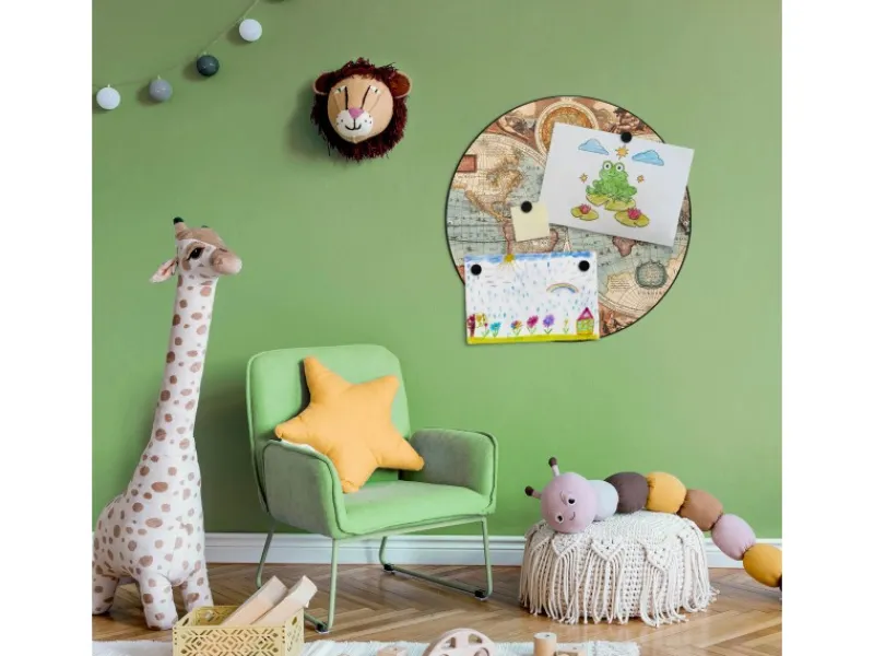 Das banjado Design Vision Board bringt Ordnung in Ihr Zettelchaos. Fotos, Notizen oder Rezepte lassen Sich stilvoll mit den beigefügten Magneten auf der runden Magnettafel. ordnen.