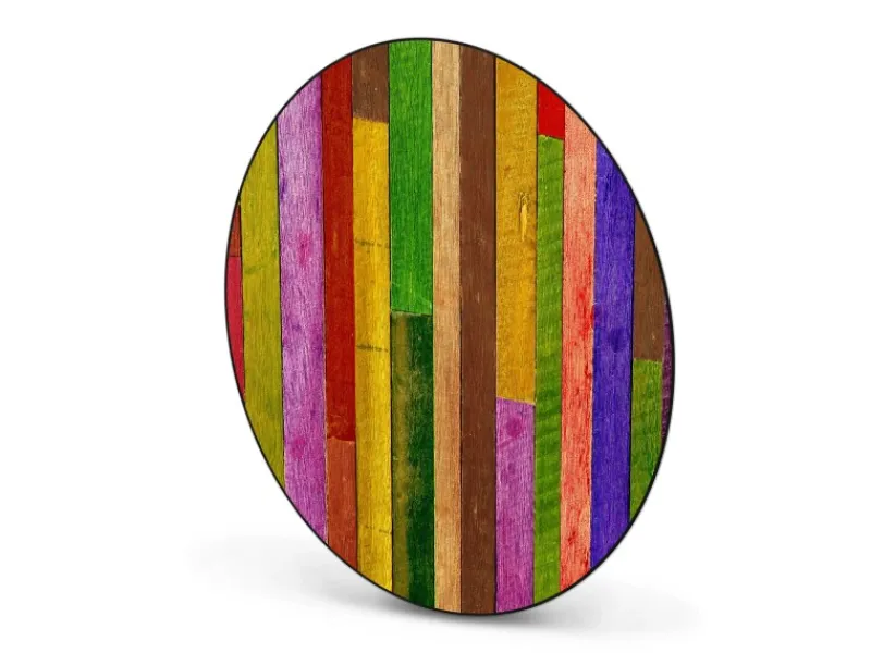 Das Motiv Holz Collage Bunt wird mit einem Schutzlaminat überzogen und ist lösungsmittelfrei.