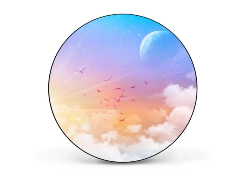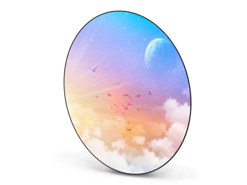Das Motiv Vögel am Himmel wird mit einem Schutzlaminat überzogen und ist lösungsmittelfrei.