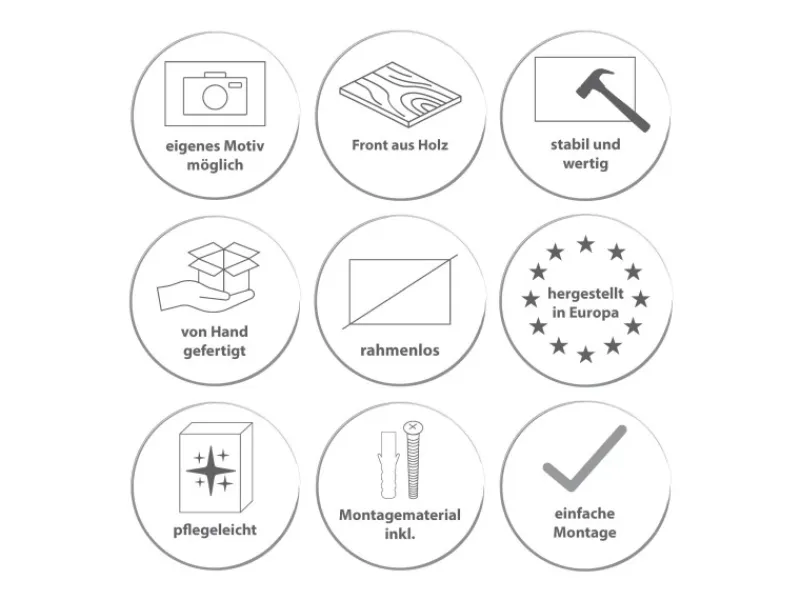 Einfache Montage dank 4 Aufhängepunkten an der Rückwand, Montagematerial inklusive.