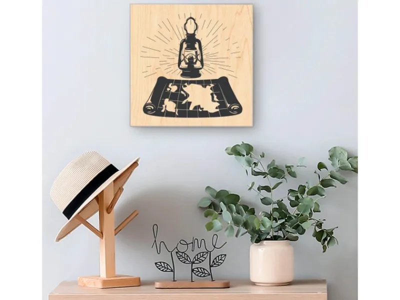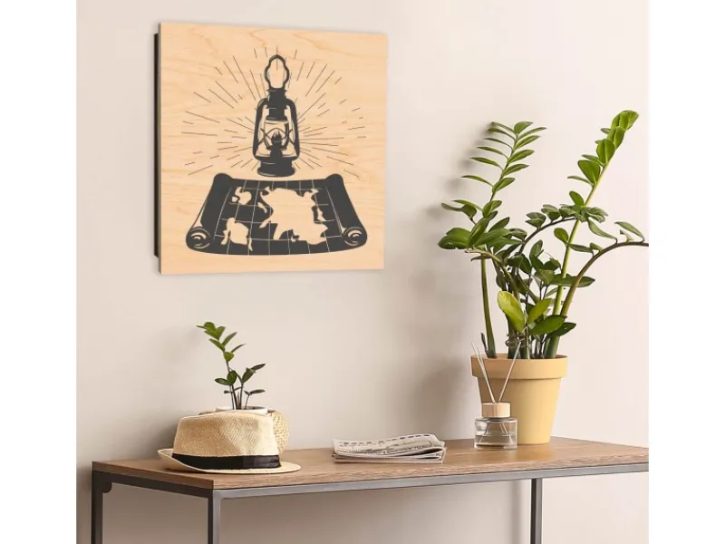 Motiv Entdecker-Laterne wird per Direktdruck auf die Holzfront gedruckt.