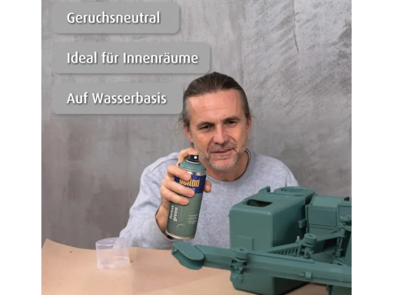 Der Lackspray ist eine Sprühfarbe auf Wasserbasis, die geruchsneutral ist und somit auch problemlos im Innenbereich verwendet werden kann. Sie ist hochpigmentiert, was für eine hohe Farbintensität und Deckkraft sorgt. Diese Farbe ist sowohl für den Innen- als auch Außenbereich geeignet, da sie witterungs- und UV-beständig ist. Der Farbverlauf bleibt samtig in einer seidenmatten Optik. Dank der einfachen Handhabung liefert belton Buntlack Perfect überzeugende Ergebnisse. Sie kann auf zahlreichen Untergründen wie Eisenmetallen, Holz, Ton, Stein, Papier, Styropor und lackierbaren Kunststoffen direkt angewendet werden. Für saugende und behandelte Holzflächen, verzinkten Stahl, Aluminium, Keramik und NE-Metalle ist die Verwendung einer Grundierung notwendig. Bei Kunststoffen sollte die Verträglichkeit geprüft und gegebenenfalls mit belton Kunststoff-Grundierung vorbehandelt werden. Die feine Zerstäubung sorgt für ein gleichmäßiges Sprühen, während die Farbe schnell trocknet und für Kinderspielzeug geeignet ist.