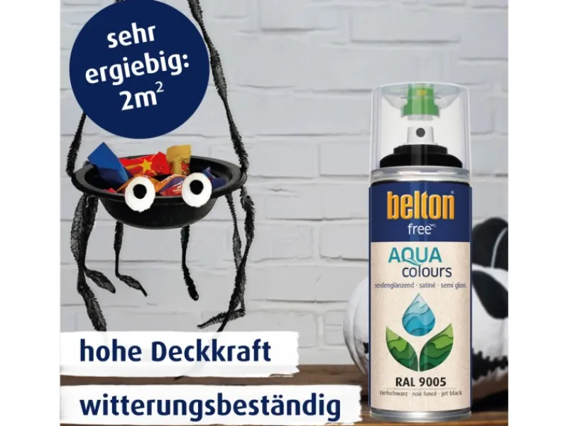 Zu 99% wasserbasierend, geruchsneutral und nahezu ohne Lösungsmittel. Ideal für geruchsensible Bereiche. Witterungs-, UV-beständig und lichtecht. Auf vielen Untergründen, wie z.B. Eisenmetalle, Holz, lackierbare Kunststoffe, Karton, Papier, Stein, Glas, Keramik und Styropor einsetzbar. Verzinkter Stahl, Aluminium und NE-Metalle sind mit Belton Free AQUAprimer Grundierung vorzubehandeln. Kunststoffe auf ihre Verträglichkeit prüfen und bei Bedarf mit Belton Kunststoff-Grundierung vorbehandeln. Belton Free AQUAcolours Buntlack hat eine hohe Deckkraft, trocknet schnell und ist nach DIN EN 71-3 für Kinderspielzeug geeignet. Das Produkt hat eine Sprüh- und Kindersicherung, einen zweiten Sprühkopf sowie einen Farbkennzeichnungsring.
