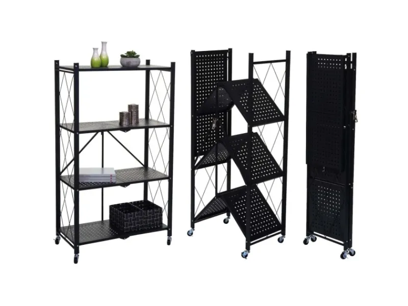 Das Klappregal lässt sich leicht öffnen und kann bei Bedarf schnell zusammengeklappt werden