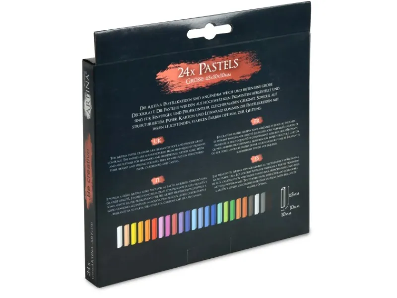 Artina WeichpastellkreideWerden Sie kreativ, erweitern Sie Ihren Künstlerbedarf und entdecken Sie die vielfältigen Möglichkeiten mit der Artina Softpastellkreide im Set. Als eines der Top-Produkte dieser Reihe lassen sich die Softpastelle ohne Zuhilfenahme anderer Malmittel sehr bequem verarbeiten. Mit den weichen und seidenmatten Farben lassen sich wundervolle Farbverläufe mit verblüffender Wirkung schaffen. Die Pastellpigmente von Artina überzeugen durch eine sehr hohe Farbintensivität sowie durch eine äußerst brillante Farbgebung und können für viele Maltechniken innerhalb der Pastellmalerei angewendet werden.Feinste Pigmente und kräftige FarbenDurch die hohe Stabilität der Mischung aus anorganischen und organischen Mineralien in den Pigmenten, entsteht eine besonders vielfältige und kräftige Farbwirkung mit hoher Leuchtkraft.Die Pastelle besitzen einen mäßigen Härtegrad und eine filigrane Färbung.Die Artina Softpastelle als Kreide Stifte sind weich und zeichnen sich durch eine hohe Farbintensität sowie einen samtigen Abrieb aus, welcher sich gut verwischen lassen.Maße einer Softpastellkreide:Länge: ca. 62mm Breite: ca. 10mmProduktinformationverschiedene Farben sehr farbintensiv hohe Leuchtkraft Länge: ca. 62 mm Durchmesser: ca. 10 mm
