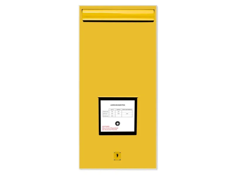 Das Motiv Briefkasten Gelb wird mit einem Schutzlaminat überzogen und ist lösungsmittelfrei.