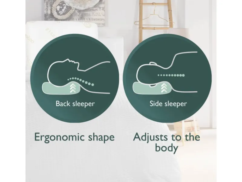 Beautissu Kissen Memory Foam BeauErgo BN Nackenstützkissen Bambus – 65x40x14 cmDas Kissen aus Memory Schaum ist sowohl für Rückenschläfer als auch für Seiten- oder Bauchschläfer geeignet.Das orthopädische Kopfkissen ist aufgrund des Bambus Bezug hypoallergen und somit resistent gegen Staub und Milben. Der Bezug fördert die Atmungsaktivität des Kopfkissens und wirkt gleichzeitig temperaturausgleichend.Ergonomische FormDas orthopädische Nackenstützkissen passt sich im Schlaf ideal an Ihre Körperform an. Nacken, Rücken und Wirbelsäule werden in der Nacht optimal gestützt, sodass Verspannungen und Schmerzen vorgebeugt werden können.Mit BelüftungslöcherDurch die Air Flow Belüftungslöcher können Sie sich sicher sein, dass sie jederzeit ein frisches Kissen vorfinden werden.Abnehmbarer Bezug