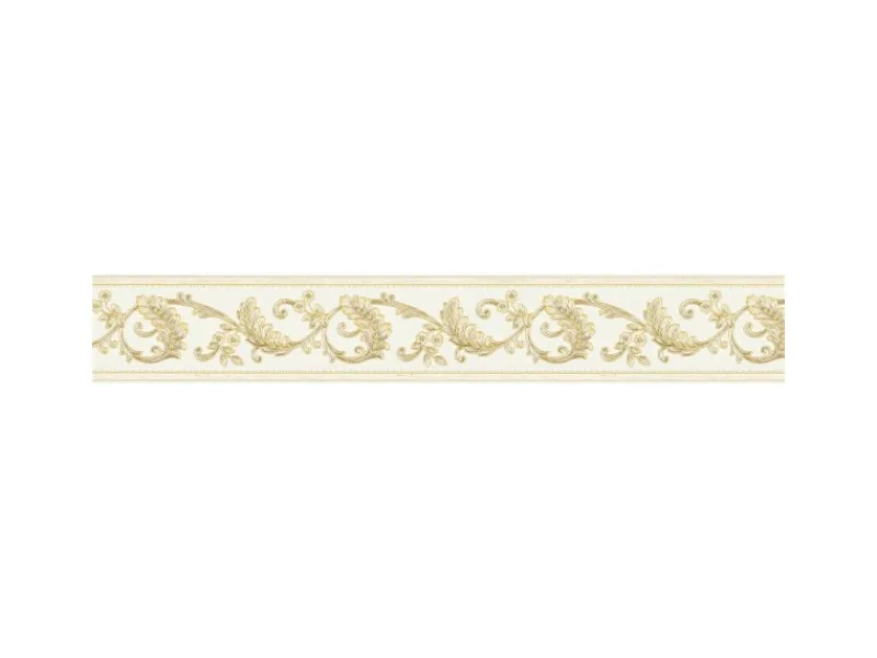 Best Bricoflor Ornament Bordüre Selbstklebend Tapetenbordüre in Weiß und Gold für Schlafzimmer und Badezimmer Vlies Tapetenborte im Barock Stil