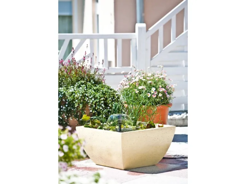 – Zubehör: zwei Wasserspielaufsätze, Teichfigurenanschluss