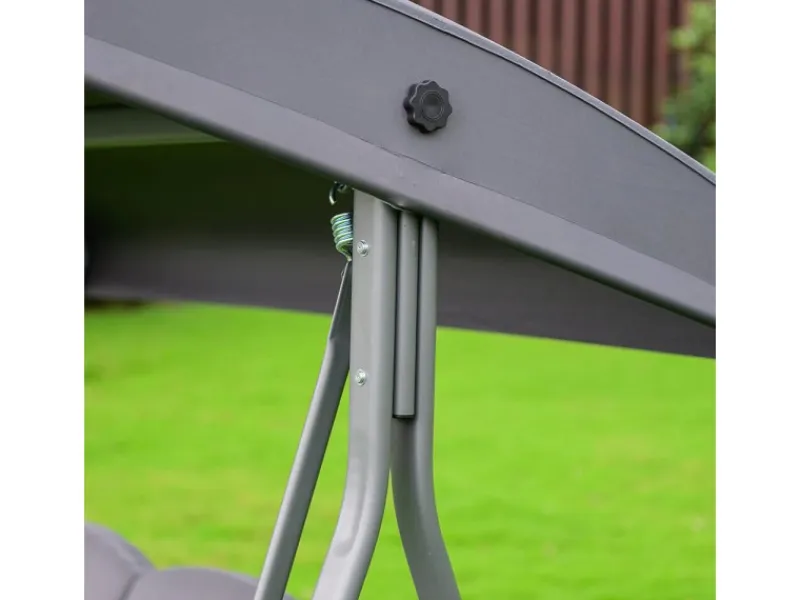 Das neigungsverstellbare Dach lässt Sie stets im Trockenen und schafft ein schattiges Plätzchen.