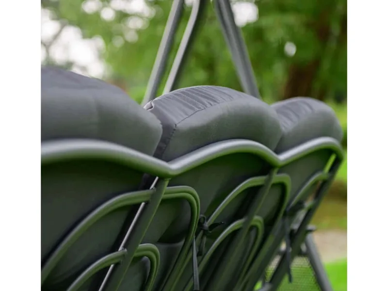 Dank der großen Sitzfläche kann die Schaukelbank bis zu drei Personen tragen. Die weiche Polsterung ist mit einer dicke von 8 cm gut gefüllt um sorgt somit für ein bequemes Sitzgefühl.