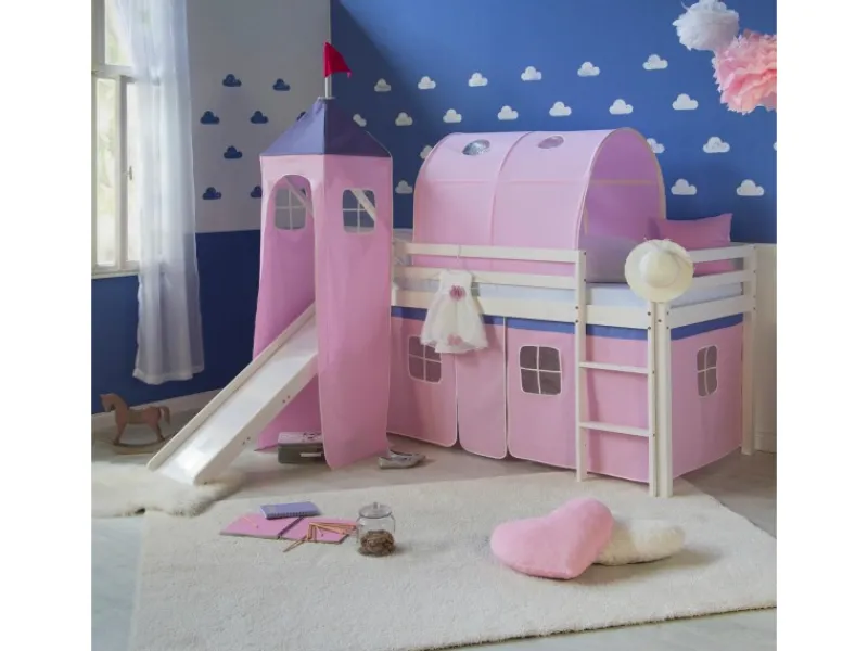 Bettgestell mit 1 Leiter, 1 Vorhang, 1 Turm und 1 Tunnel Rosa