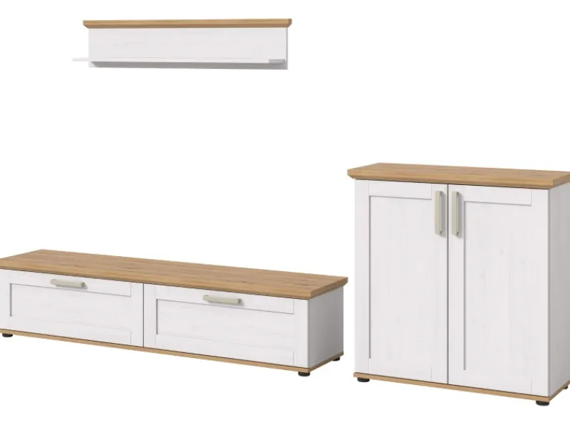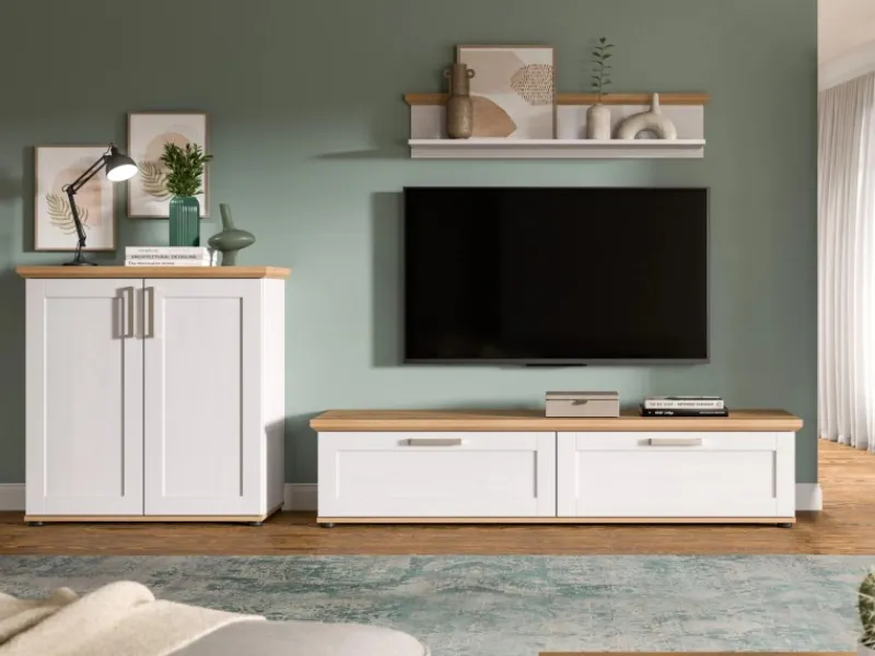 Praktisch, kompakt: 3-teiliges Set bestehend aus TV-Lowboard, Kommode und Wandboard