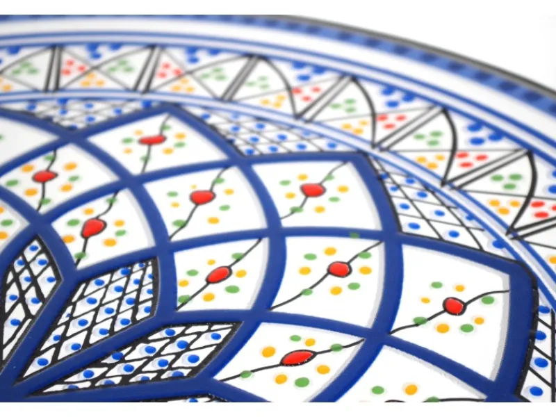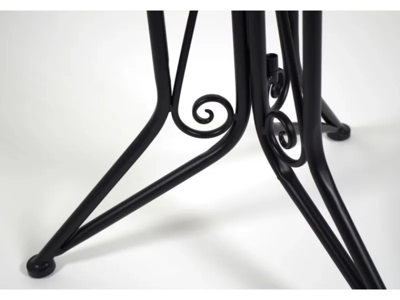 Runder Tisch von Kobolo aus schwarzem Metall mit blau weißer Mosaik-Keramikplatte verziert