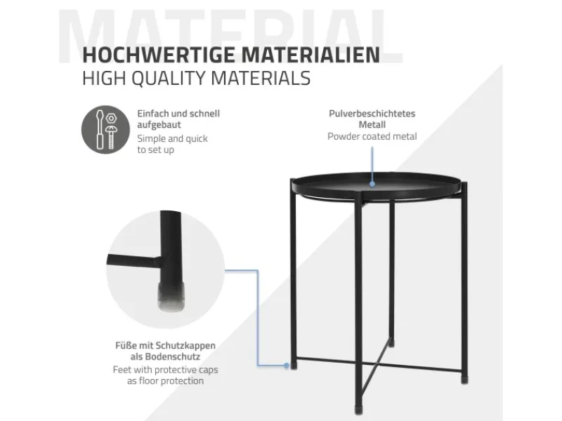 Bringen Sie immer Komfort in Ihr Leben. Wann immer Sie unseren Beistelltisch nicht verwenden möchten, klappen Sie ihn einfach zusammen und tragen Sie ihn an jeden gewünschten Ort.